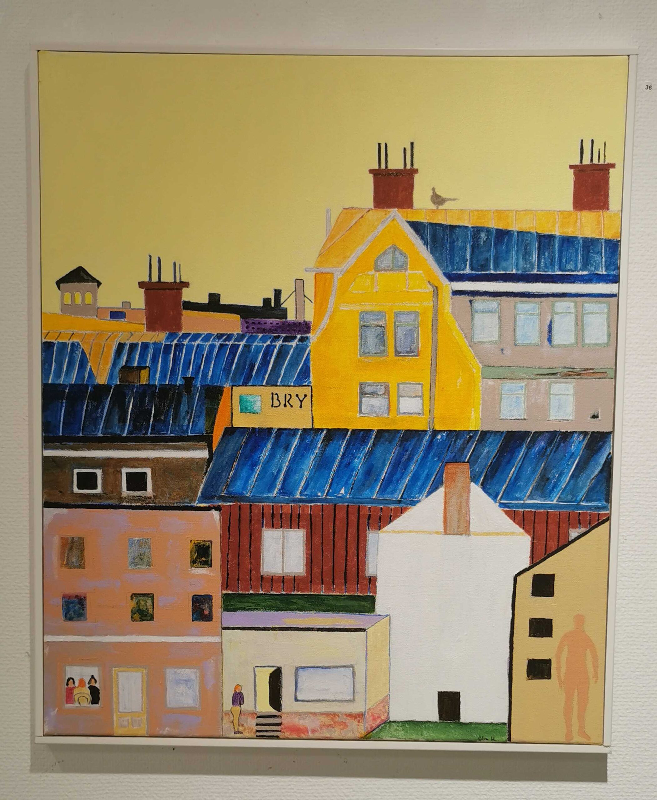 Det sitter en duva på taket av