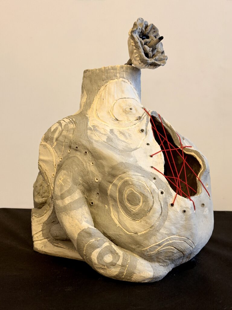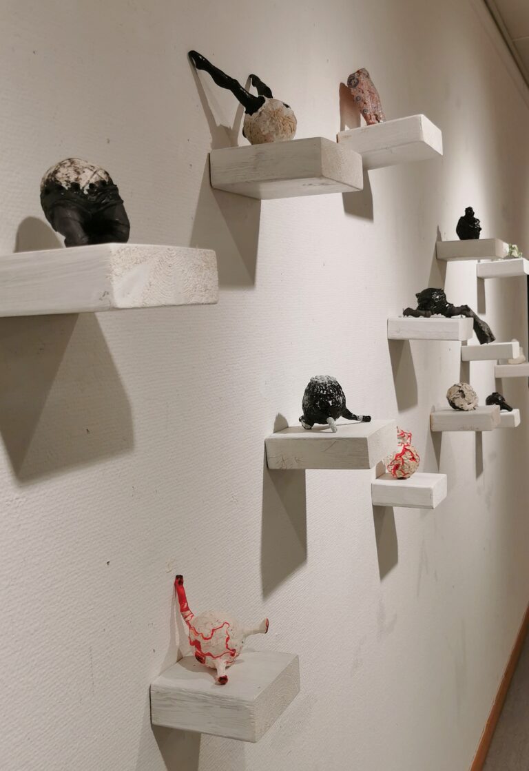 erfarenheter. Genom abstrakta oljemålningar, keramiska skulpturer och textila